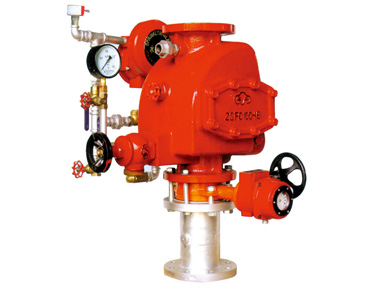 干式報(bào)警閥用于干式噴淋報(bào)警滅火消防系統(tǒng) 中,屬于系統(tǒng)消防供水的報(bào)警及控制閥門(mén),該系統(tǒng)一般應(yīng)用于環(huán)境溫度低于4℃的建筑物中,在伺應(yīng)狀態(tài)時(shí),由系統(tǒng)管網(wǎng)中的壓縮空氣通過(guò)干式報(bào)警閥將消防壓力水封于供水側(cè),當(dāng)閉式噴頭發(fā)生動(dòng)作引起管網(wǎng)氣壓下降并達(dá)到一定值時(shí)干式報(bào)警閥打開(kāi),壓力水通過(guò)閥進(jìn) 入系統(tǒng)管網(wǎng)滅火。 性能參數(shù):
